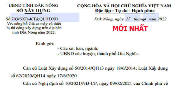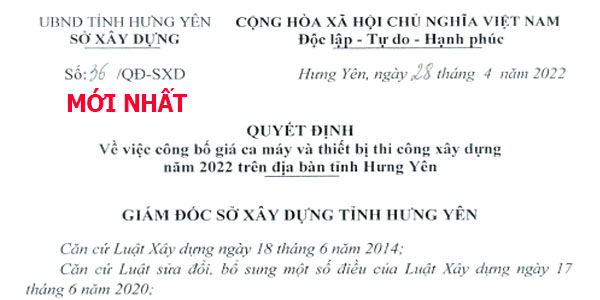 Bảng giá ca máy tỉnh Long An năm 2022 quyết định 319/QĐ-SXD ngày 19/7/22